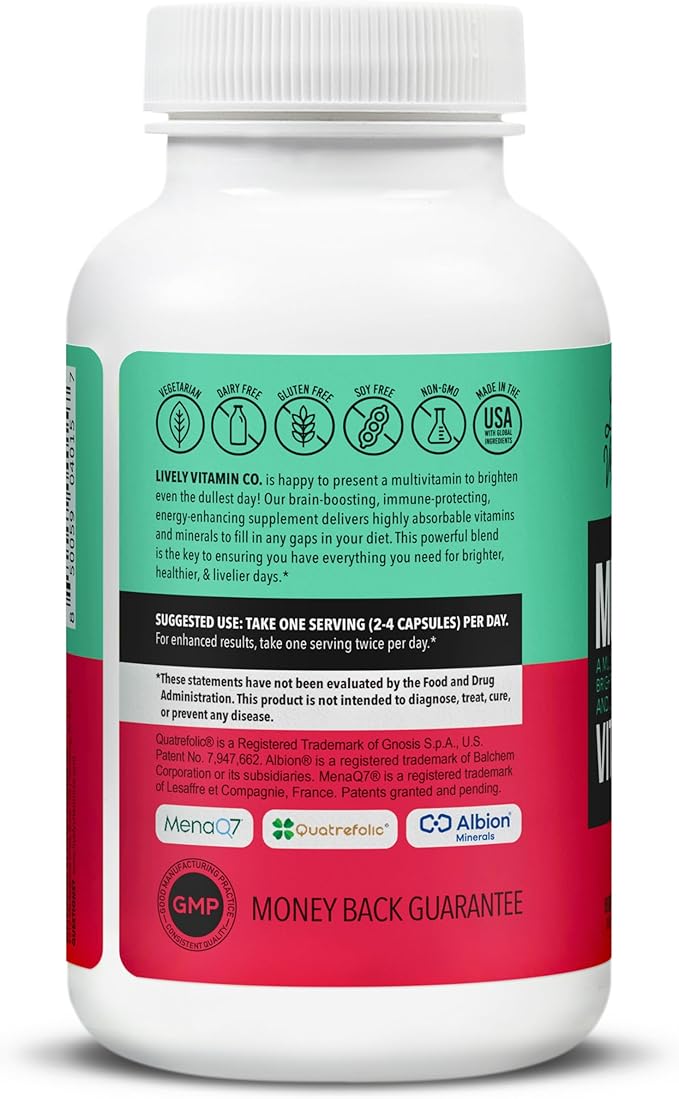 - ONLY THE FINEST INGREDIENTS TO KEEP YOU AND YOUR FAMILY HEALTHY - There is a reason this is the Lively Vitamin Co flagship product. Plain and simple, it works! This is the product that started it all and it is so popular that we started making other high-quality products to help with the needs of our customers. If you want a multi that works, you found it.
