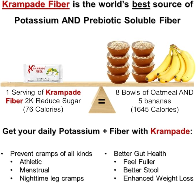 - Complete Cramp Defense - Krampade's proprietary potassium chloride and potassium citrate powder has 2x the potassium of coconut water and is the faster, more effective alternative to quinine for leg cramps, heating pad for period cramps, magnesium spray and other so-called solutions. If it cramps, we uncramp it, guaranteed.