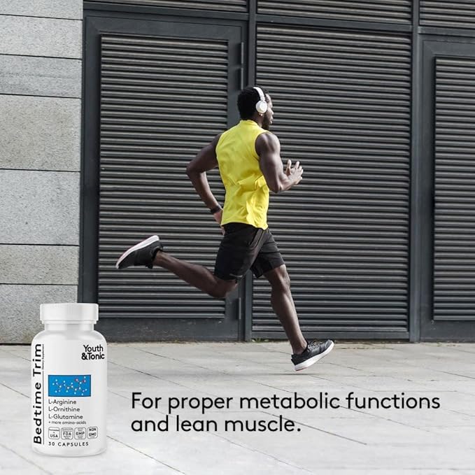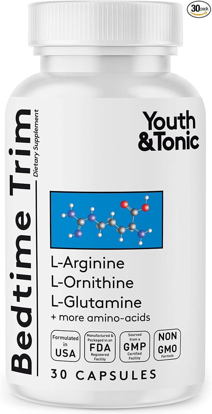 Youth & Tonic PM Bedtime Trim Amino Acids Supplement Pills for Men and Women | 30 Capsules to Support Metabolism and Defined Lean Muscles During Night Time