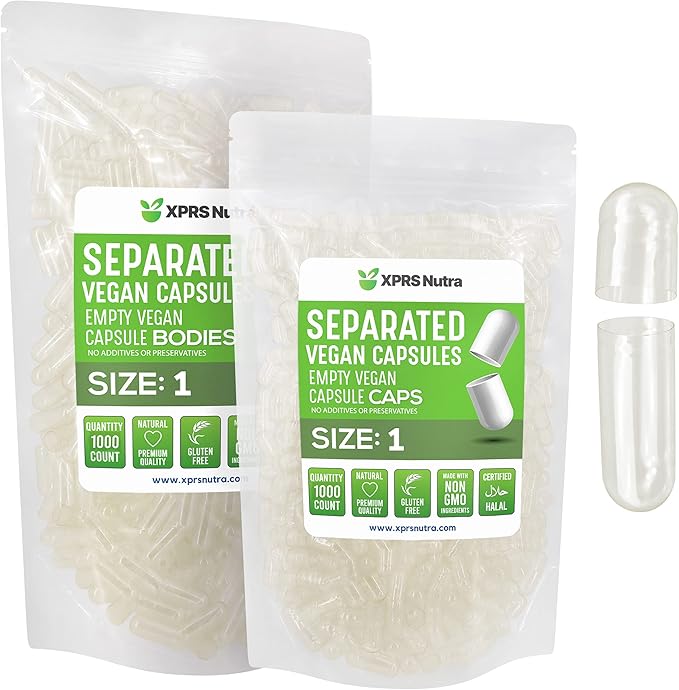 XPRS Nutra Vegan Size 1 Separated Capsules - 1000 Count Premium Empty Capsules Separated in Bags - Clear Empty Capsules - Separated Empty Capsules - Pill Capsules Empty for DIY Supplement Filling