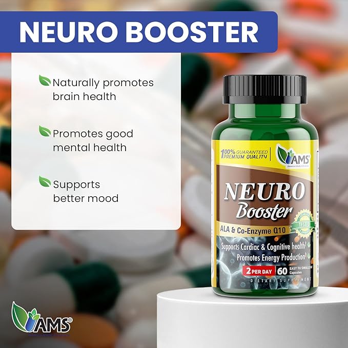 America Medic & Science Neuro Booster (60 Capsules) | Nutritional Supplement for Brain Health | Vitamin Pills for Better Memory and Cognitive Function | with Coenzyme Q10, ALA, and Acetyl L-Carnitine