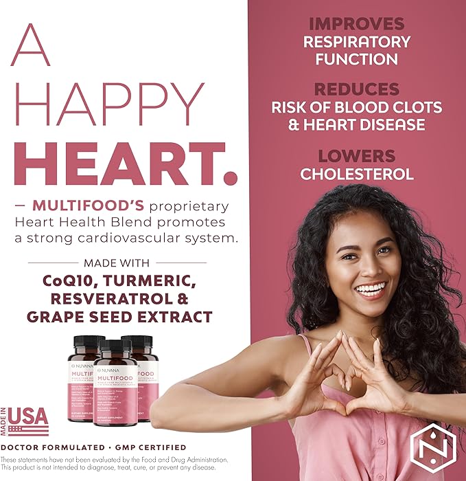- IMMUNE SYSTEM BOOST: Nuvana's Multifood is essential for women as it contains a unique blend of Coenzyme Q10 (CoQ10), turmeric, grape seed extract, and Resveratrol. The supplement's Iron and Vitamins D3 & K are crucial in enhancing the immune system and strengthening bones, which are especially important for women.
