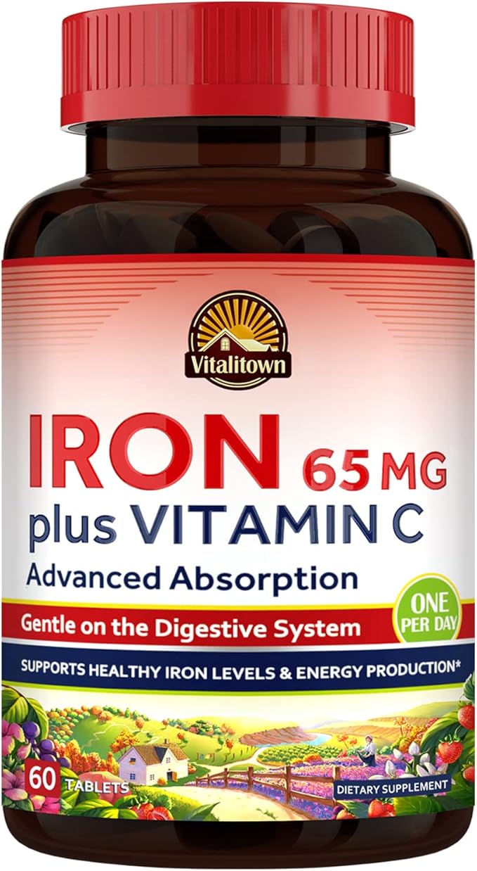 - Fortified Formulation Iron Supplement for Women Men: Vitalitown High Potency Iron contains 65 mg of carbonyl iron (equivalent to 65 mg of elemental iron) and 250 mg of vitamin C for enhanced absorption of iron to help you support healthy iron levels and prevent iron deficiency.*