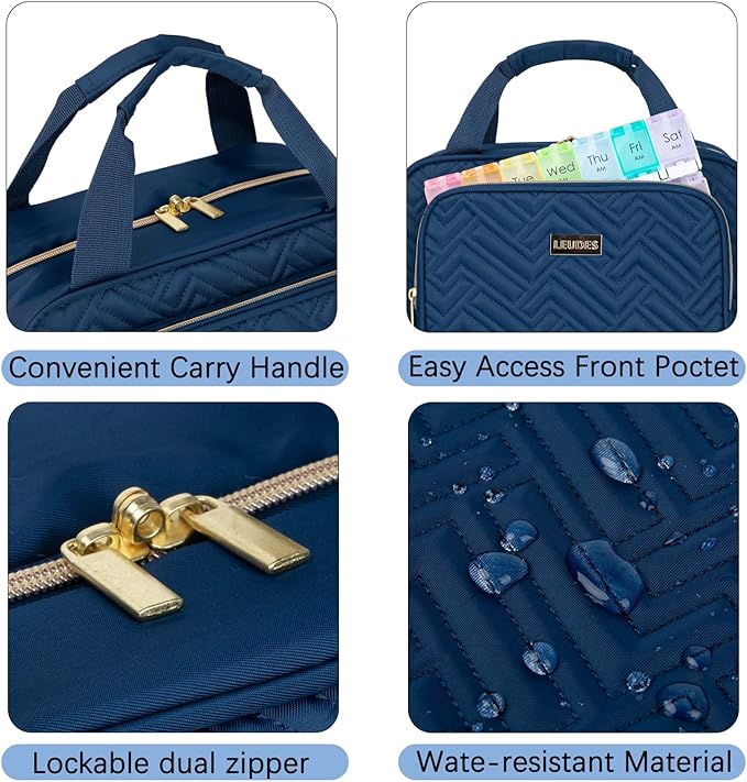 Leudes Travel Pill Bottle Organizer,Medicine Organizer and Storage,Home Medication Bag, Cases,Carrier for Pills,Vitamin,Fish Oil,Supplements for Women and Men (Large, Blue)