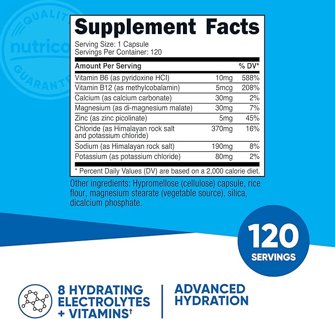 Nutricost Electrolyte Complex (Advanced Hydration with Real Salt®) 120 Capsules - 8 Hydrating Electrolytes & Vitamins, Gluten Free, Non-GMO, Vegetarian