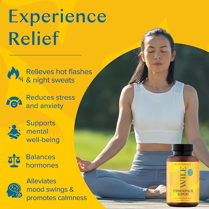 WILE Menopause and Perimenopause Supplements for Women with Ashwagandha - Menopausal Symptoms Relief for Stress, Hot Flashes, Night Sweats - Healthy Sleep & Hormone Balance Support, Vegan, 30 Servings