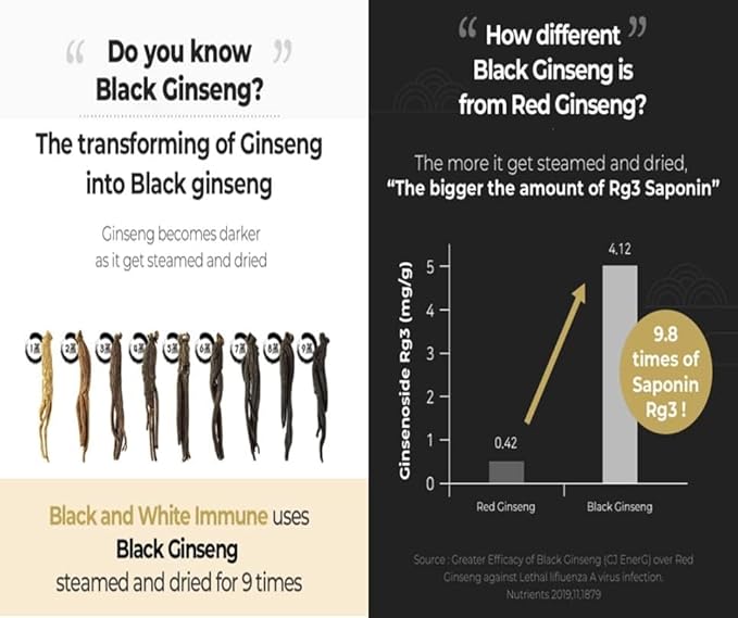 - [WHAT IS BLACK & WHITE IMMUNE?] : Black ginseng & White Platycodon combination will bring extra vitality in your life