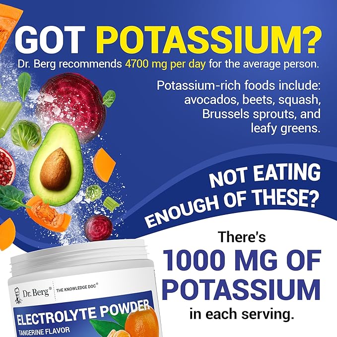 Dr. Berg Zero Sugar Hydration Keto Electrolyte Powder - Enhanced w/ 1000 mg of Potassium & Real Pink Himalayan Salt (NOT Table Salt) - Tangerine Flavor Hydration Drink Mix Supplement - 50 Servings