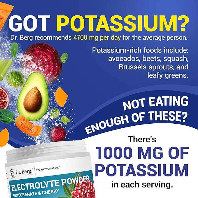 Dr. Berg Zero Sugar Hydration Keto Electrolyte Powder - Enhanced w/ 1000 mg of Potassium & Real Pink Himalayan Salt (NOT Table Salt) - Pomegranate and Cherry Hydration Drink Supplement - 50 Servings