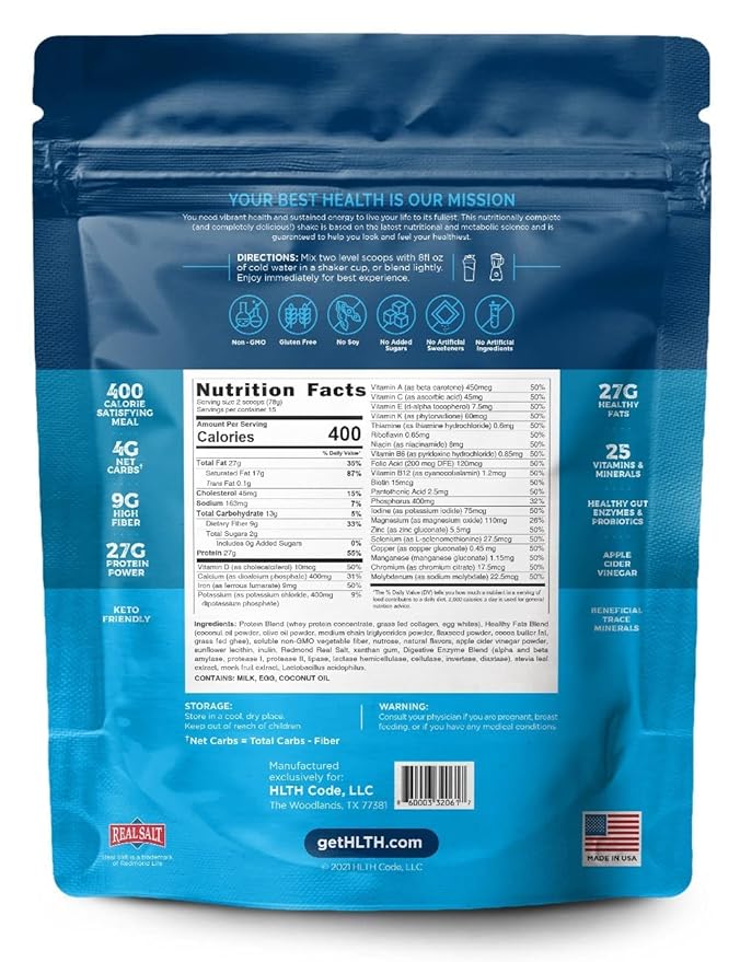 HLTH Code Complete Meal Replacement Shake - Healthiest Meal Replacement = Healthiest You | Keto Friendly | High Protein | Low Carb | Collagen | Gluten Free | Creamy Vanilla Flavor (15 servings)