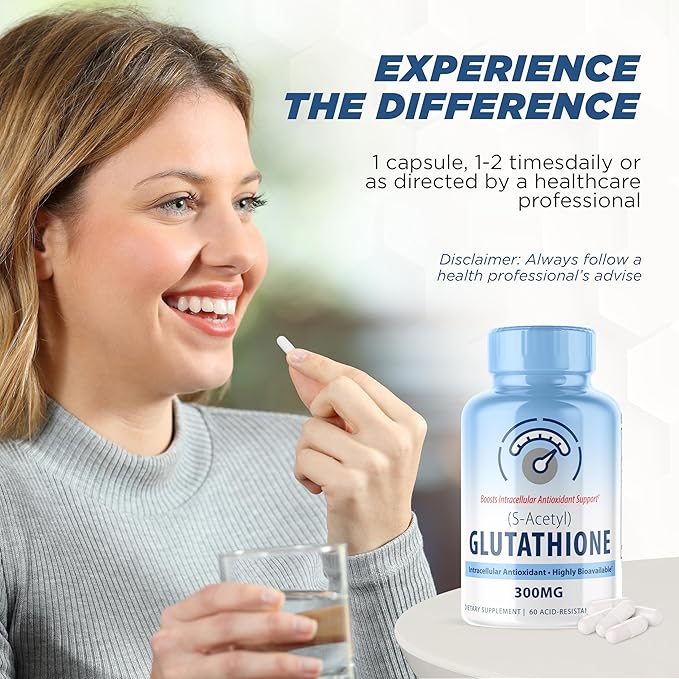 - Boost Antioxidant Defenses: Get 300mg of S Acetyl Glutathione per serving, known as the "master antioxidant" for its ability to neutralize free radicals. Secure your body and support overall wellness with our acetyl glutathione.