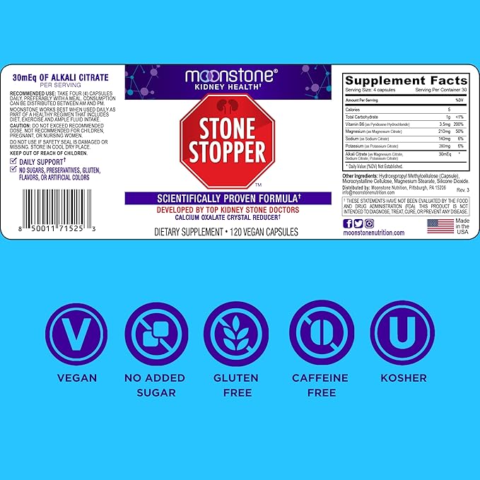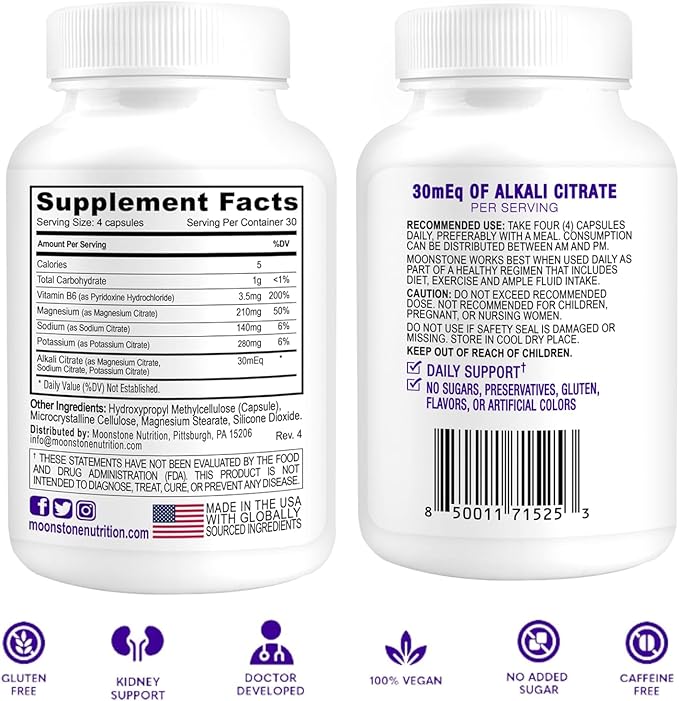 - DOCTOR CREATED FORMULA rich in alkali citrate, stops the formation of stones and improves kidney health by helping manage urine pH, electrolytes, and citrate levels