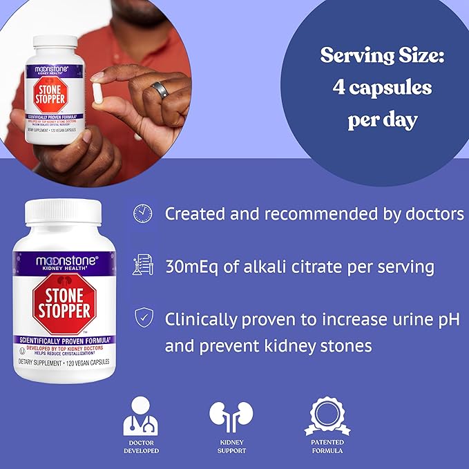 Stone Stopper Capsules, Kidney Stone Prevention, Calcium Oxalate Protector, Alkali Citrate Support Supplement, Developed by Urologists to Support Kidney Health, 90 Day Supply (360 Count)