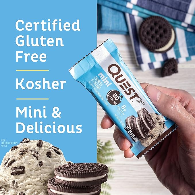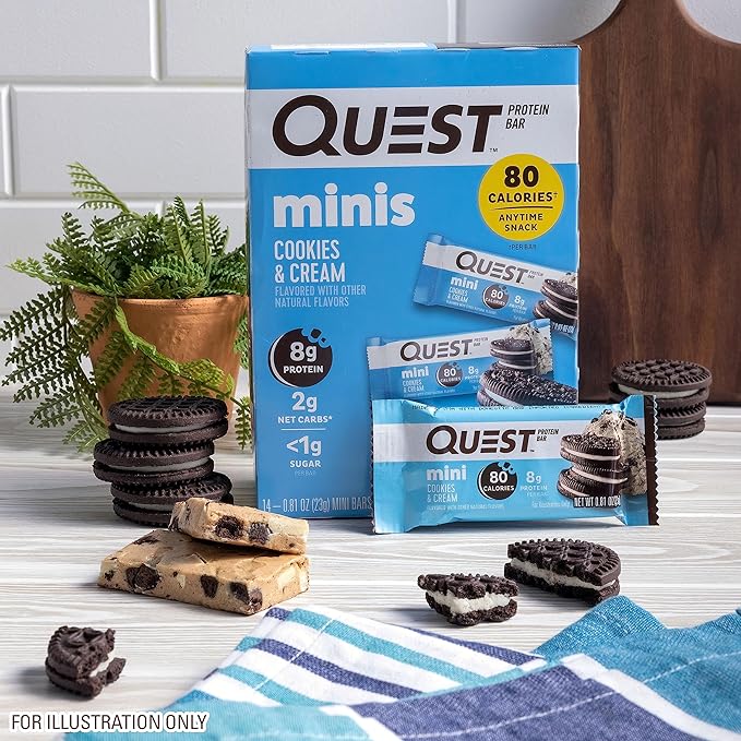 Quest Nutrition Mini Cookies & Cream Protein Bars, 8g Protein, 1g Sugar, 2g Net Carbs, Gluten Free, 14 Count