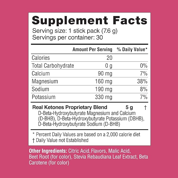 Real Ketones BHB Exogenous Ketones Drink Mix Packets Keto Electrolytes Powder Packets No Sugar with 4 Main Fasting Electrolytes Plus Hydrating Patented Keto BHB - 30 Count Raspberry Lemonade