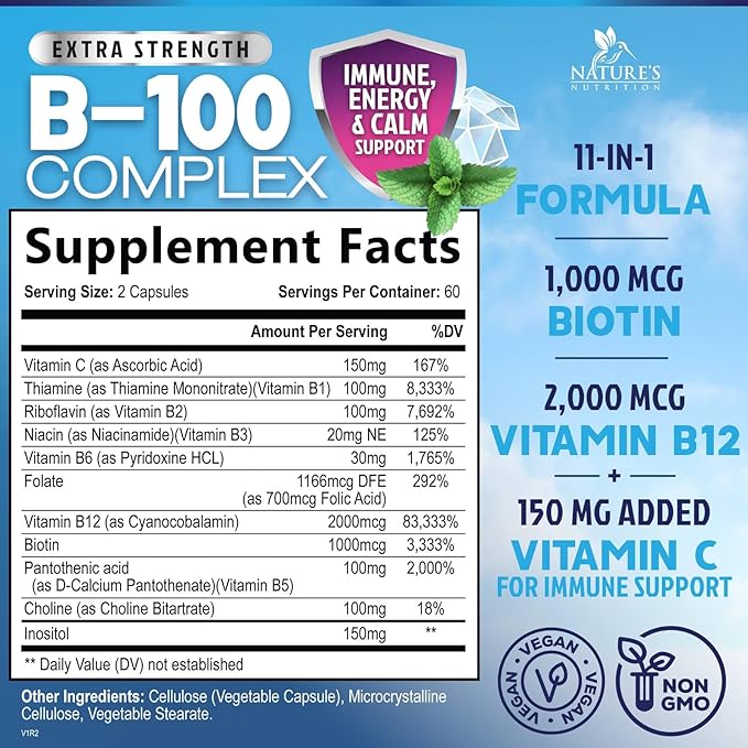 - Vitamin B Complex Capsules by Nature's Nutrition: b complex 100 12 and b12 b6 bcomplex bcomplexvitamins c capsules energy flat for men mujer multi para plus super supplement supplements support vit vitamin vitamins with women tablets immune support s b2 hombres b100 b3 active b17 b5 complete day dietary softgels supply vegan vita extra strength high