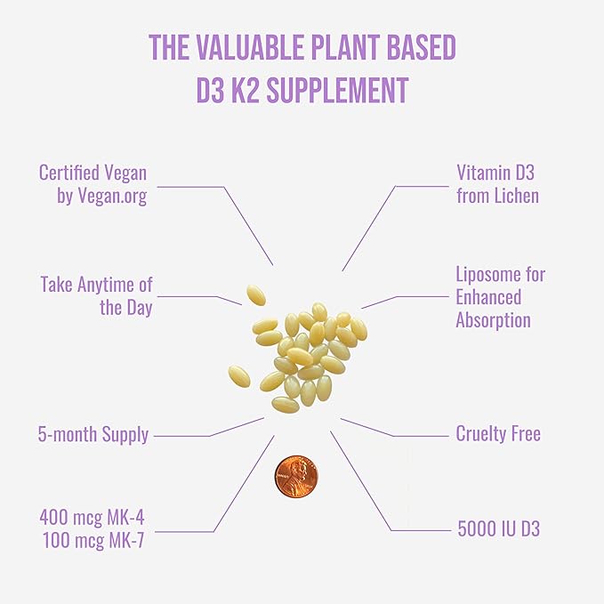 - ✅ Clean & Natural Vitamin D3 and K2 - This vegan d3 from Lichen with vitamin k2 supplement is certified by Vegan Awareness Foundation. It is an awesome vitamin D K vegan supplement for these who follow vegan, vegetarian or regular diet.