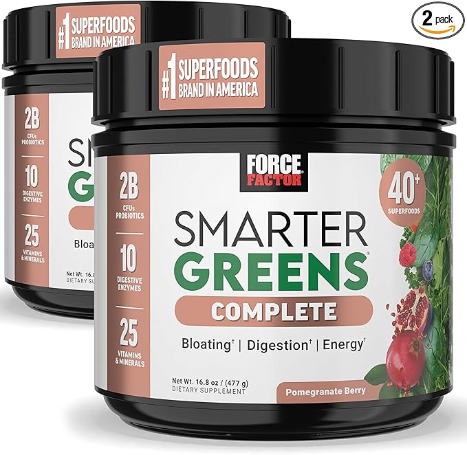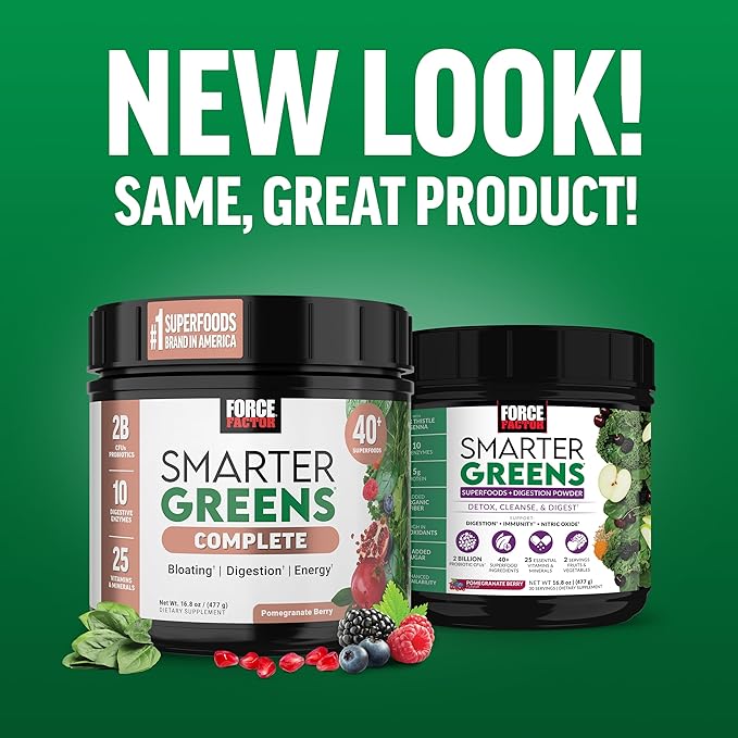 FORCE FACTOR Smarter Greens Superfoods Powder to Support Digestion, Gut Health, Bloating, Greens Powder with Probiotics, Prebiotics, Digestive Enzymes, & Adaptogens, Pomegranate Berry, 60 Servings