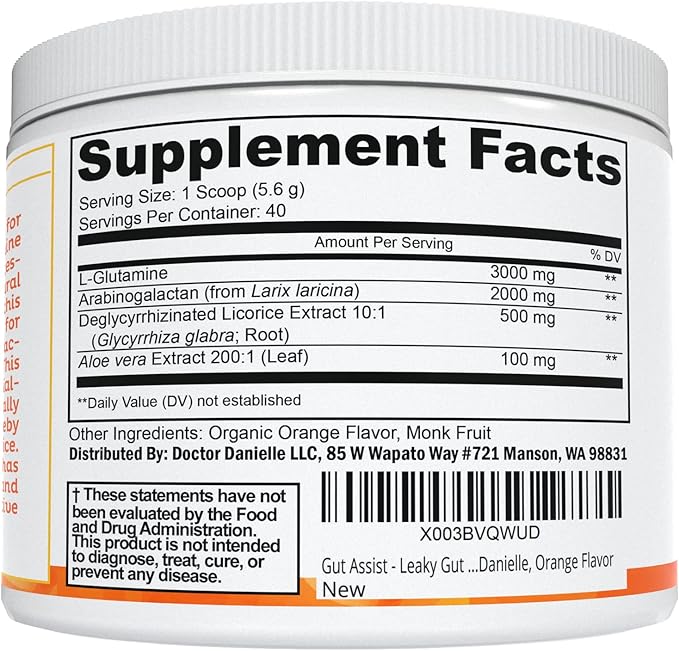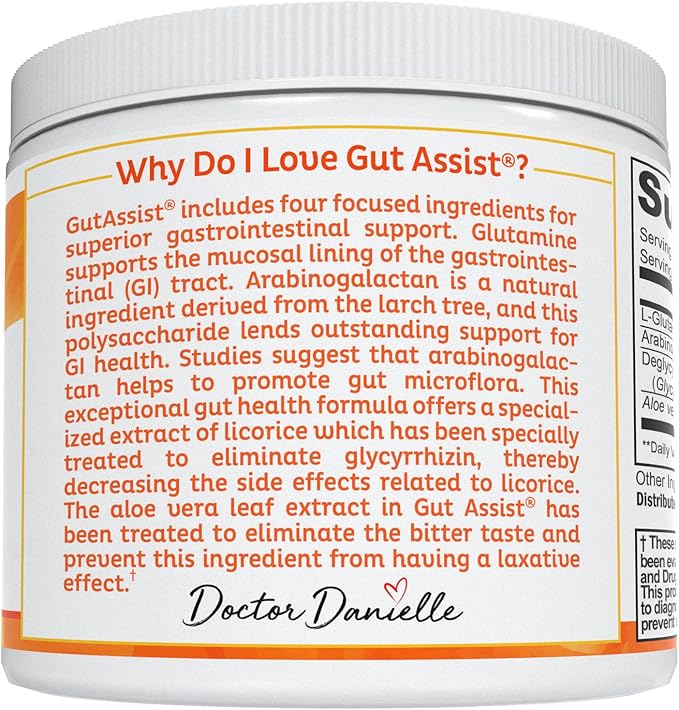 Doctor Danielle Gut Assist - Leaky Gut Repair Supplement Powder - Glutamine, Arabinogalactan, Licorice Root - Supports IBS, Heartburn, Bloating, Gas, Constipation, SIBO from, Orange Flavor