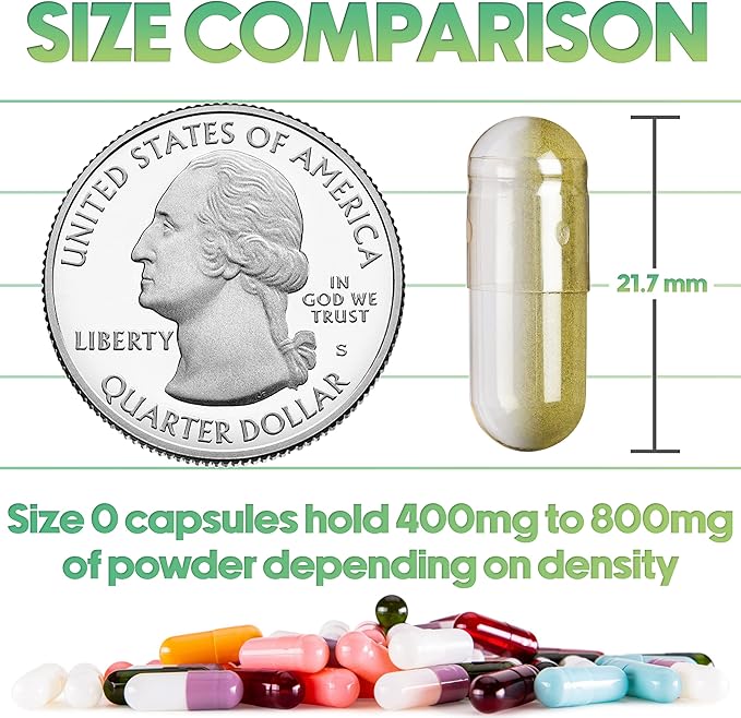 - Subscribe and Save - We know you'll love the quality and convenience of our capsules size 0. We source from trusted suppliers and process all of our inventory in Utah, USA. Up your health game this year with our separated pill capsules empty. Visit our storefront to see our full line of gel caps, vegetarian capsules, powdered supplements, and more.