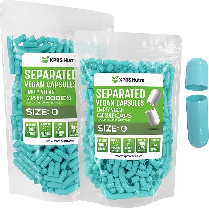 XPRS Nutra Vegan Size 0 Separated Capsules - 1000 Count Premium Empty Capsules Separated in Bags - Separated Empty 0 Capsules - Pill Capsules Empty for DIY Supplement Filling (Aqua)