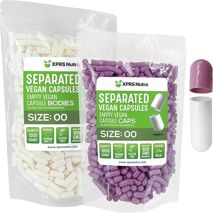 XPRS Nutra Vegan Size 00 Separated Capsules - 1000 Count Premium Empty Capsules Separated in Bags - Separated Empty 00 Capsules - Pill Capsules Empty for DIY Supplement Filling (Lavender/White)
