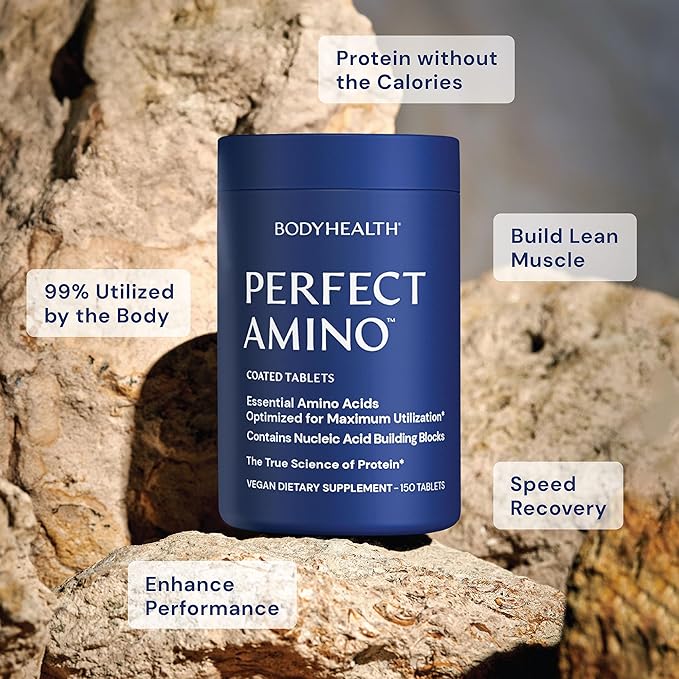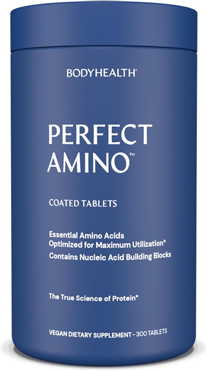 BodyHealth PerfectAmino (300 ct) Easy to Swallow Tablets, Essential Amino Acids Supplement with BCAAs, Vegan Protein for Pre/Post Workout & Muscle Recovery with Lysine, Tryptophan, Leucine, Methionine
