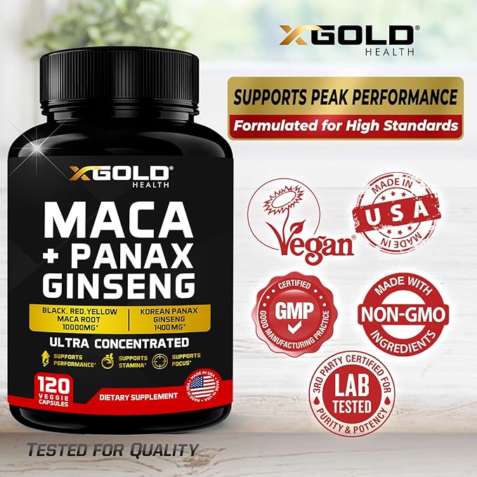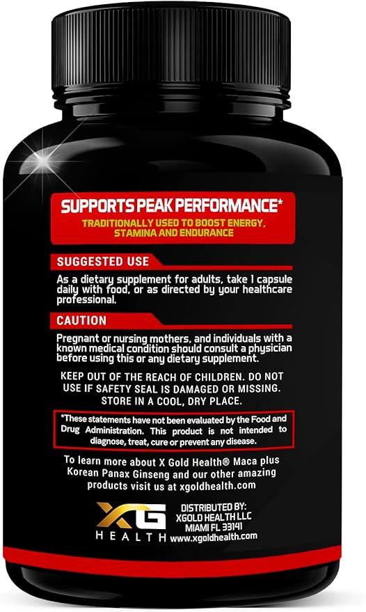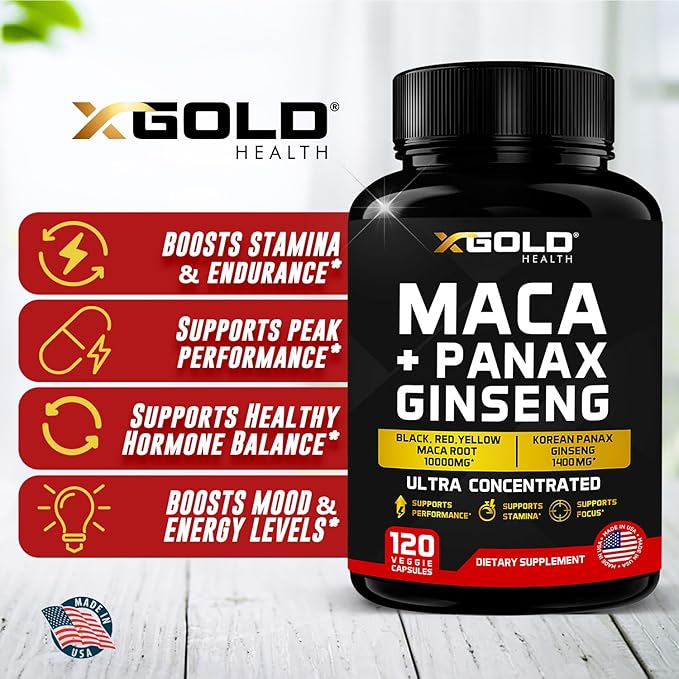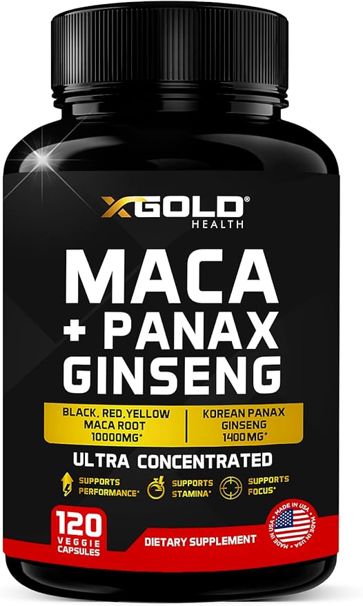 - POWER OF MACA + GINSENG EXTRACT IN ONE - The Highly Concentrated Form of X Gold Health Maca + Ginseng , a powerful blend of 10000mg Maca Root Pills (20X MORE STRENGTH) and 1400mg Korean Panax Ginseng (10X MORE STRENGTH), deliver a pure, potent dose than other best selling brands.