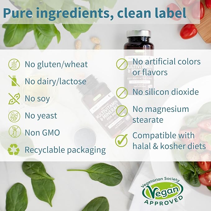 - PURE & CLEAN: lab-verified ingredients; UK GMP manufactured; vegan; no silicon dioxide or magnesium stearate; fully recyclable packaging; easy-to-swallow oval tablets