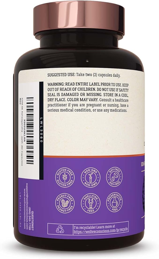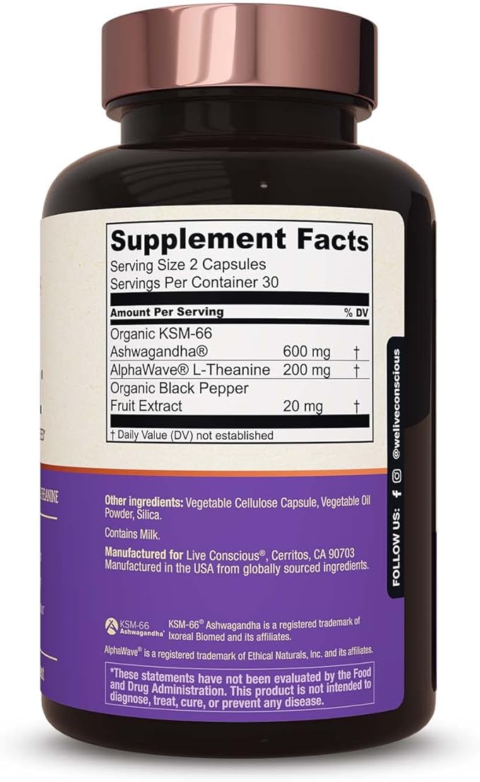 Live Conscious KSM-66 Ashwagandha Supplement w/L Theanine & AlphaWave - ZenWell Everyday Stress Relief, Mood Support, Cognitive, Brain Health - Ashwagandha for Men & Women - 60 Capsules (2-Pack)