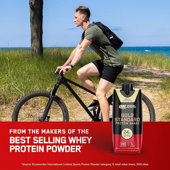 Optimum Nutrition Gold Standard Protein Shake, 24g Protein, Ready to Drink Protein Shake, Gluten Free, Vitamin C for Immune Support, Vanilla, 11 Fl Oz, 12 Count (Pack of 1) (Packaging May Vary)