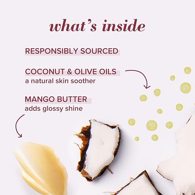 - HYDRATING LIP BALM: Burt’s Bees lip gloss contains mango butter to help enhance the glossy finish, while coconut oil and olive oil smooth and soften lips