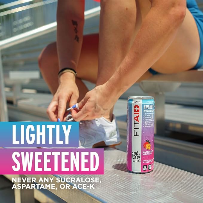 FITAID ENERGY, 200mg Natural Caffeine, Keto, Raspberry Hibiscus, Optimum Performance Formula: BCAAs, Quercetin, Electrolytes, Omega-3s, 15 calories, Paleo, Vegan & GlutenFree, 12 Fl Oz (Pack of 12)