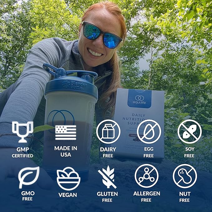 Equilife - Daily Nutritional Support, Organic and Plant Based Protein Powder, All-in-one Multivitamin, Boost Energy and Mood, Gut-Cleansing Aid and Skin Health (Pure Chocolate,14 Servings Packets)