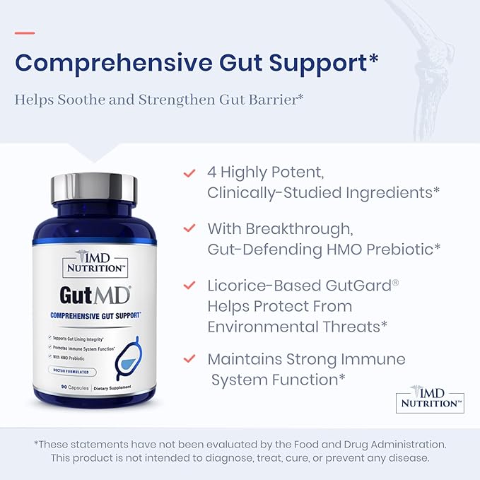 - Restore Gut Strength: With 4 clinically studied ingredients to improve the integrity of your intestinal lining, GutMD helps protect your gut from environmental threats while allowing the nutrients you need to pass through.*