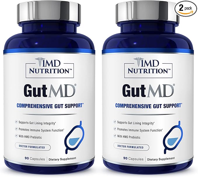 1MD Nutrition GutMD - L-Glutamine and Prebiotic for Gut Integrity | Promote Digestive Tract Health | 90 Capsules (2-Pack)