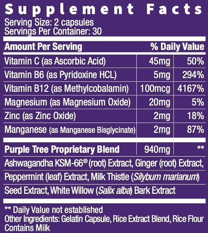 purple tree Next Day, Post-Celebration Wellness - Take Tomorrow | Replenish & Feel Your Best | Ashwagandha, Ginger, Peppermint, Milk Thistle, Electrolytes, Vitamins, 90 Pills