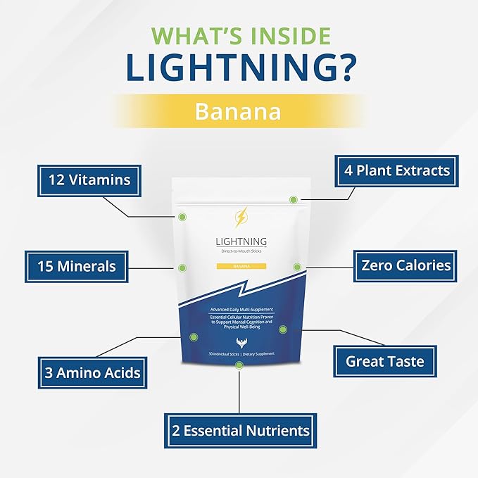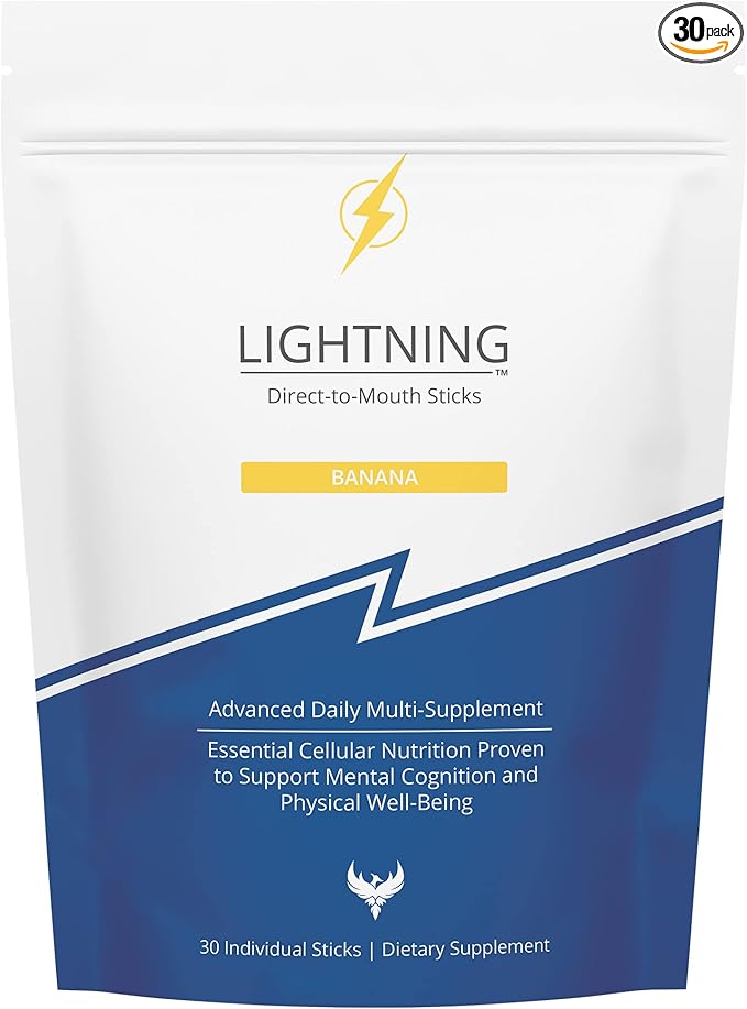 Lightning Daily Multivitamin Supplement - Vitamins and Minerals for Mental Function, Energy Support, and Physical Well-Being - Direct-to-Mouth, 30 Sticks - Banana