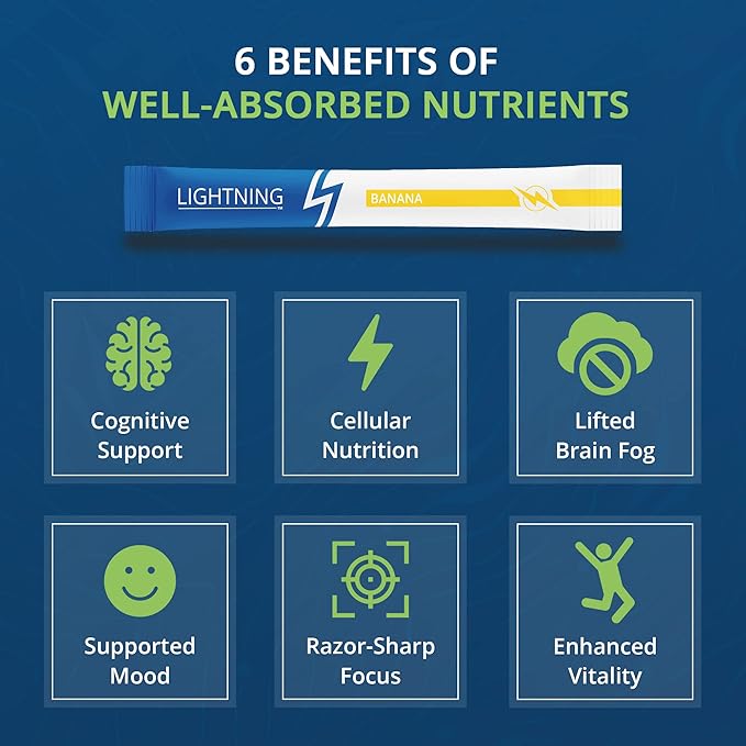 - Direct-to-Mouth Powder for Maximum Absorption: Lightning's 36 micronized brain support nutrients and minerals come in a tasty powder poured directly in your mouth and absorbed sublingually. It's a quick and easy way to start your day. No need for a full stomach to enjoy the benefits of our daily multivitamin powder. You can even take half a packet in your mouth at a time if that works better for you.