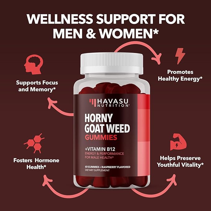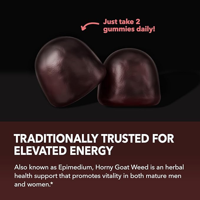 - OPTIMAL HEALTH SUPPLEMENT - Support your wellness with our unique horny goat weed gummies enriched with B 12 vitamin. Experience natural energy support for increased endurance and optimal male and female performance at any age.