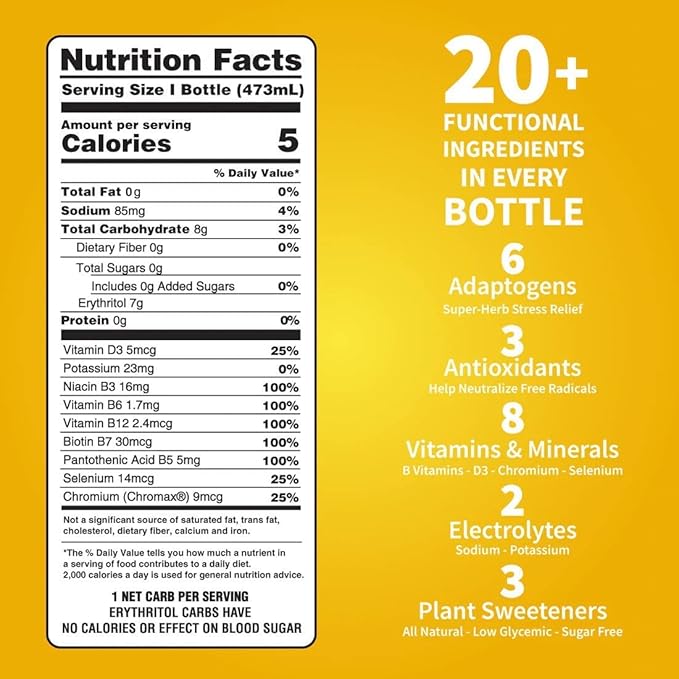 - 8 VITAMINS AND MINERALS - Our vitamin and mineral blend is specially geared towards performance. Each bottle of DRNX contains 100% of your daily value of B12, B5, B6, Niacin, and Biotin and 25% of your D3, Chromium and Selenium.