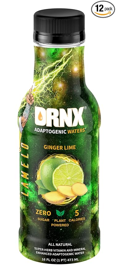 DRNX 12 Pack Adaptogenic Waters Complete Hydration Enhanced Beverage - Zero Sugar - 5 Calories - Super Herbs, B & D Vitamins, Antioxidants, Keto Friendly, All Natural (Ginger Lime)