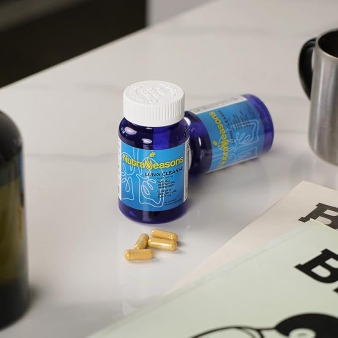 NutraSeasons Lung & Bronchial Cleanse & Detox | Respiratory Health | Immune Support | 12 Purify Ingredients | Ginger, Hawthorn Berry, Turmeric, Elecampane Root Extract, Vit A, C, D3, B6, B12 | 60 Caps