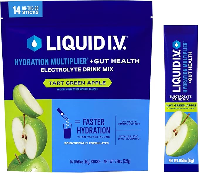 Liquid I.V.® Hydration Multiplier® +Gut Health - Tart Green Apple | Electrolyte Powder Drink Mix | 1 Pack (14 Servings)