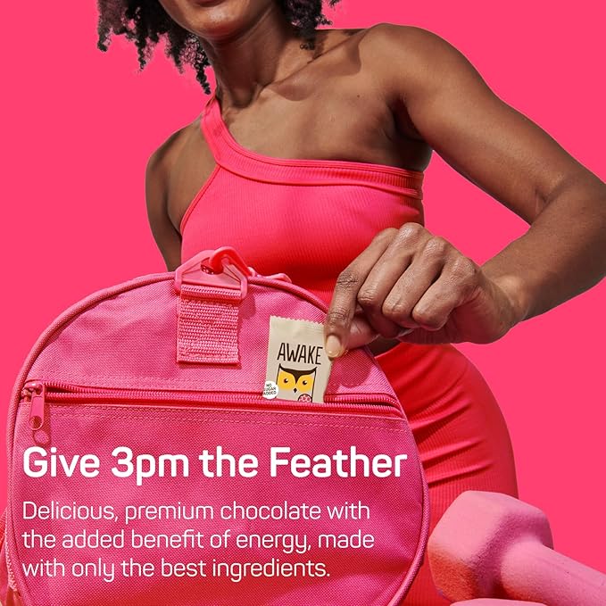 - Why AWAKE? - We make premium chocolate with the added benefit of caffeine in a variety of flavors (including No Sugar Added), using only simple, delicious ingredients. Bite-sized and individually wrapped bites and bars for on-the-go convenience.