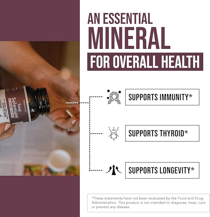 - 200mcg Selenium Per Dose, Clinically Validated: Total Selenium provides a clinically validated dose of 200 mcg of Selenium per capsule.