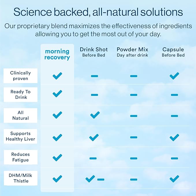 - The Drink For When You Drink Shots: Try it at home, at a party or for travel; Morning Recovery's convenient one-serving bottles are TSA-friendly & easy to fit in a purse, pocket, or backpack