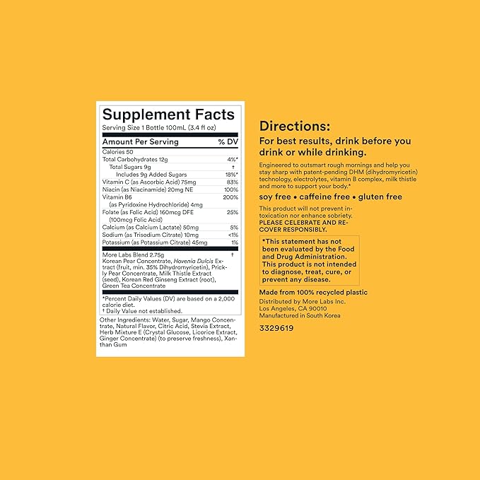 Morning Recovery Electrolyte, Milk Thistle Drink Proprietary Formulation to Hydrate While Drinking for Morning Recovery, Highly Soluble Liquid DHM, Orange Mango, Pack of 24