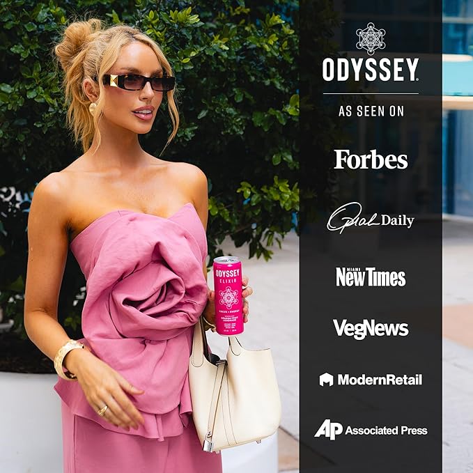 Odyssey Elixir Cognition + Sustainable Energy - Lion's Mane, Cordyceps, L Theanine, Ginseng & 85mg Green Tea Caffeine - 0 Added Sugar - No Jitters or Crash - Orange - 12 Fl oz, 12 Pack