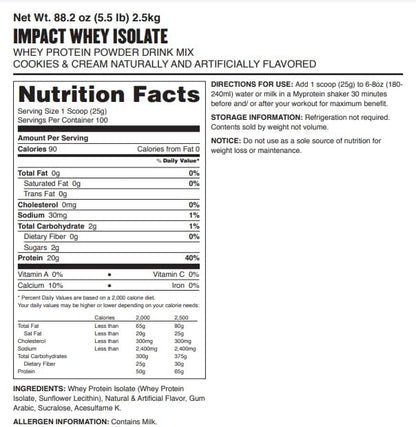 Myprotein - Impact Whey Isolate - Whey Protein Powder - Flavored Drink Mix - Daily Protein Intake for Superior Performance - Cookies & Cream (5.5 lbs, Pack of 1)